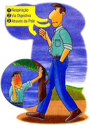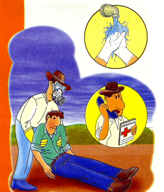 Os agrotóxicos podem entrar no organismo de quem manuseia o produto pela respiração, pela via digestiva e principalmente através da pele. As pessoas expostas a agrotóxicos podem sofrer intoxicações agudas (efeitos imediatos) ou crônicas ( efeitos a longo prazo) que provocam os seguintes sintomas: dor de cabeça, mal-estar e cansaço, tontura e fraqueza, perturbação da visão, nauseas e vômitos, dor de barriga e diarréia, saliva e suór excessivos; e dificuldade respiratória. |