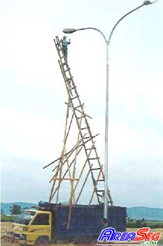 Isso é montage,, ñ existe poste nessa altura, e o \"suporte\" ñ iria aguentar!!