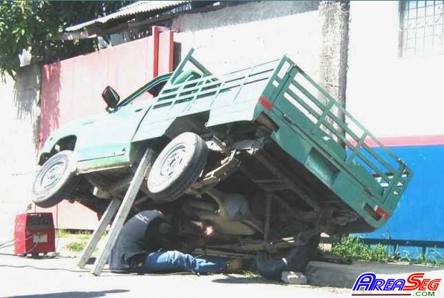 Olha isso!! sera que ele não percebe q se esse automovel cair ele pode parar numa cadeira de rodas
