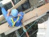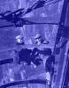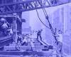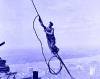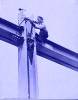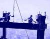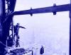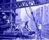 As fotos mocnocromáticas azuis são da construção do Empire State, em Nova York.