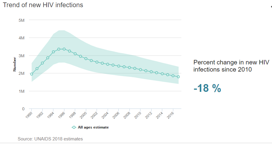 As formas de tratamento da AIDS ainda são pouco eficazes. Destacam-se entre os medicamentos os antivirais como o DDI (dideoximosina), o AZT (azidotimidina) e substâncias como o interferon e a interleucina e os medicamentos para tratamento de infecções oportunistas (pneumonia, encefalite, entre outras). Quanto mais cedo se começar o tratamento mas chances de cura tem o paciente. Por volta de 1990 a AIDS já era conhecida mundialmente e muitos paises passaram a combate-la de forma sistemática, com campanhas informativas e de prevenção veiculadas na mídia. No Brasil e em outras partes do mundo, defende-se a quebra de patente de empresas fabricantes de medicamentos contra AIDS, isto é, luta-se para que se de permissão legal que outras empresas e mesmo o próprio governo possa fabricar medicamentos baratos para o combate à doença e distribuí-lo aos doentes de AIDS. Até o fechamento da edição deste texto, em junho de 2003, a vacina para AIDS ainda não havia sido descoberta. Atualização 2018 Passaram-se mais de 15 anos desde a criação dessa pagina e pouca coisa mudou. HIV/AIDS têm tido um grande impacto na sociedade contemporânea, tanto como uma doença quanto como uma fonte de discriminação. A doença também tem impactos econômicos significativos. Há muitos equívocos sobre o HIV/AIDS, tais como a crença de que ela pode ser transmitida pelo contato casual não-sexual. A doença também se tornou sujeita a muitas controvérsias envolvendo as religiões, além de ter atraído a atenção médica e política internacional (e um financiamento de larga escala) desde que foi identificada em 1980. Teorias da conspiração dizem que a AIDS foi fabricada por algum governo como arma biológica e vazou para a sociedade. Outras teorias de conspiração dizem que teria sido inserida no mundo por extraterrestres. No Brasil o exame para AIDS pode ser feito pelo SUS, demora em torno de 3 dias para o resultado. O tratamento da AIDS é gratuito. O governo tem feito várias campanhas de prevenção principalmente na época do Carnaval. A AIDS continua sem cura. (2018) Estatísticas: ![]() Fonte: Boletim Epidemiológico do Ministério da Saúde ![]() Fonte: unaids.org Links sobre AIDS |