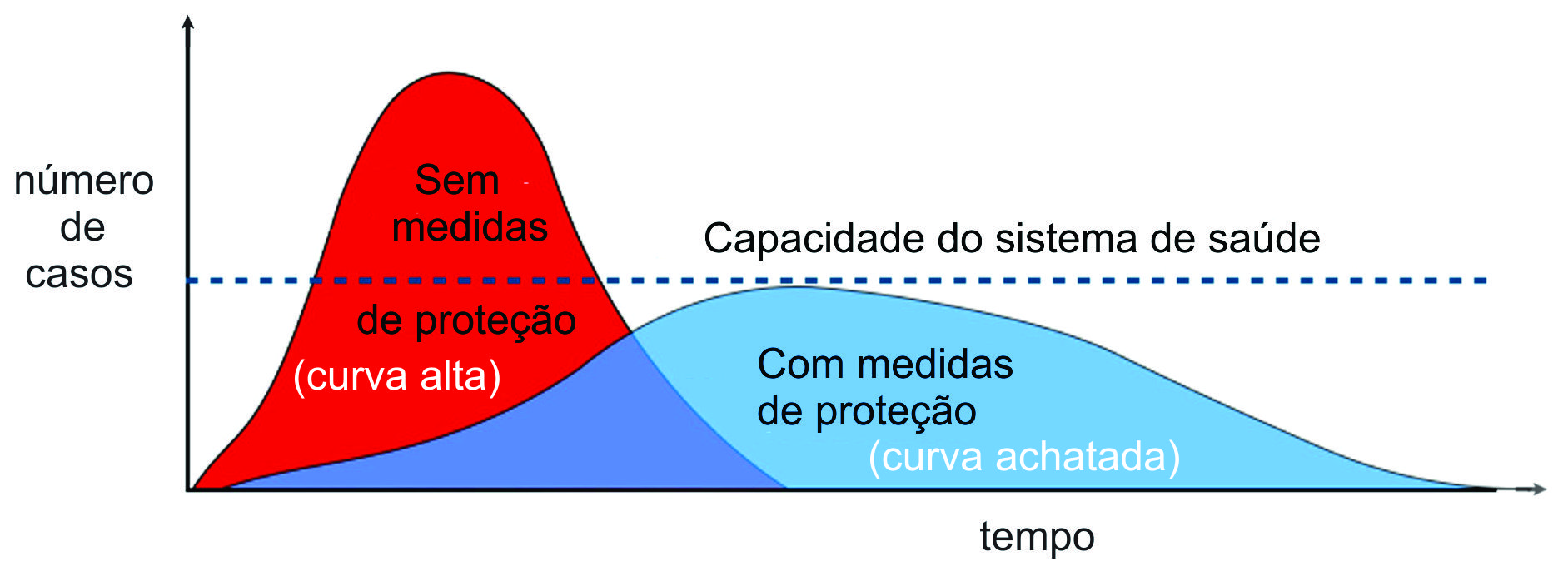 Para achatar a curva são tomadas medidas de controle como o distanciamneto social, uso de mascaras, lockdown, quarentena, etc.