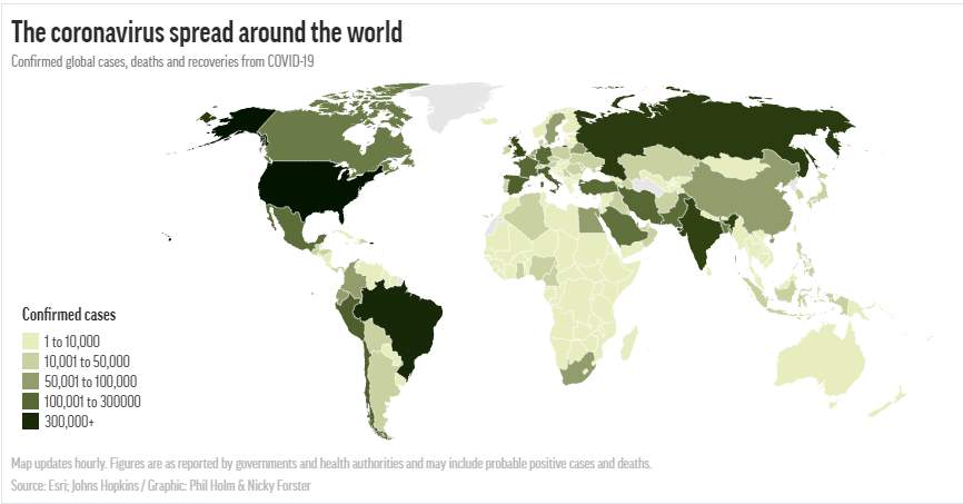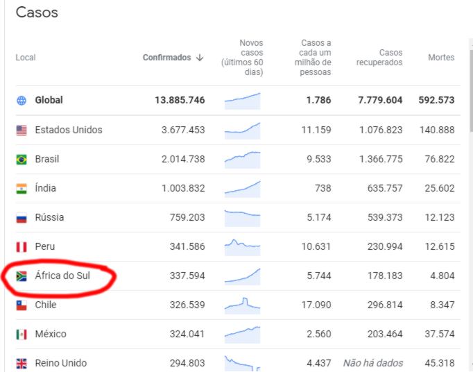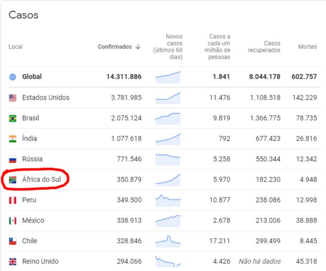 Previsão confirmada! Ocorreu o empate técnico, mas estes três países foram superados pela África do Sul (20/jul/2020)