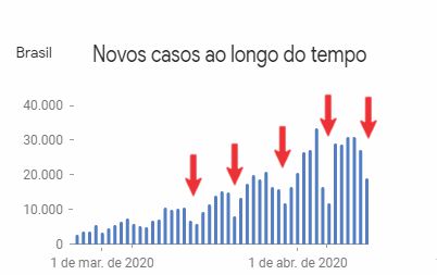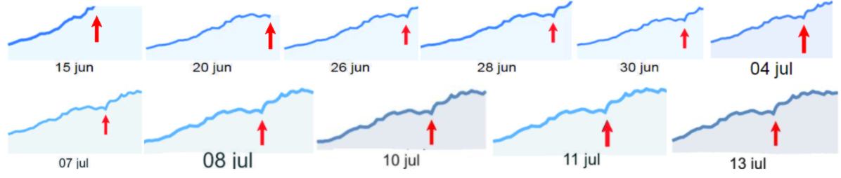 Sequência de Epi Curves do Brasil, tendo como Referência a seta vermelha, onde a curva deu um salto.