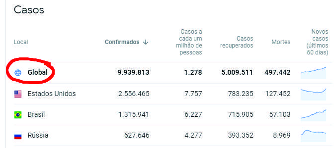 1.000.000 (um milhão) o Brasil atingiu a cifra de um milhão de infectados, por Covid-19, em 19 de junho de 2020.