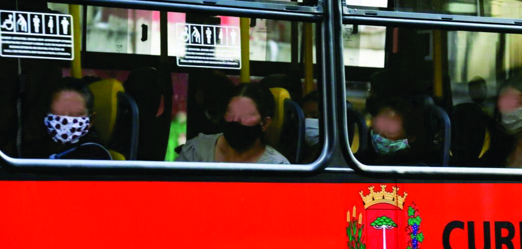 50% em muitas cidades, foi determinada que esta (50%) deve ser a lotação máxima dos ônibus do transporte coletivo.