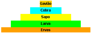 dispostas em níveis, de forma que a espécie situada em nível superior se alimenta da inferior