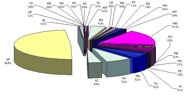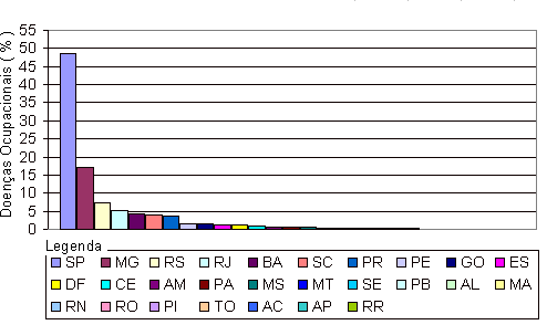 7. Ocorrência de Doenças Ocupacionais por Estado, em Percentagem,