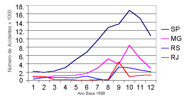 6. Tendência Evolutiva das Doenças Ocupacionais nos 4 Estados com Maior Incidência