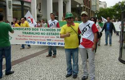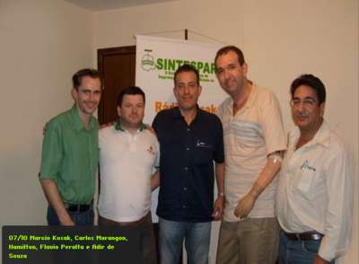 | Em abril de 2009 Eu, de amarelo e João Figueira, do SINTESC. |