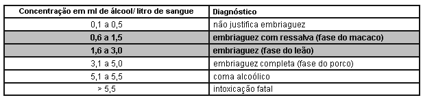 Fase do Leao é a fase que ocorre quando há concentração de 1,6 a 3,0 mg de álcool por litro